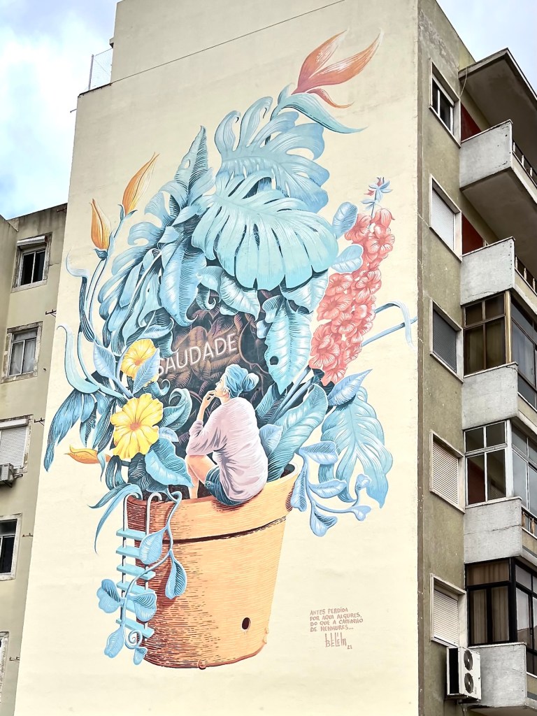 We started off with a mural called “Saudade” created by Mario Belem in 2021 during the pandemic.