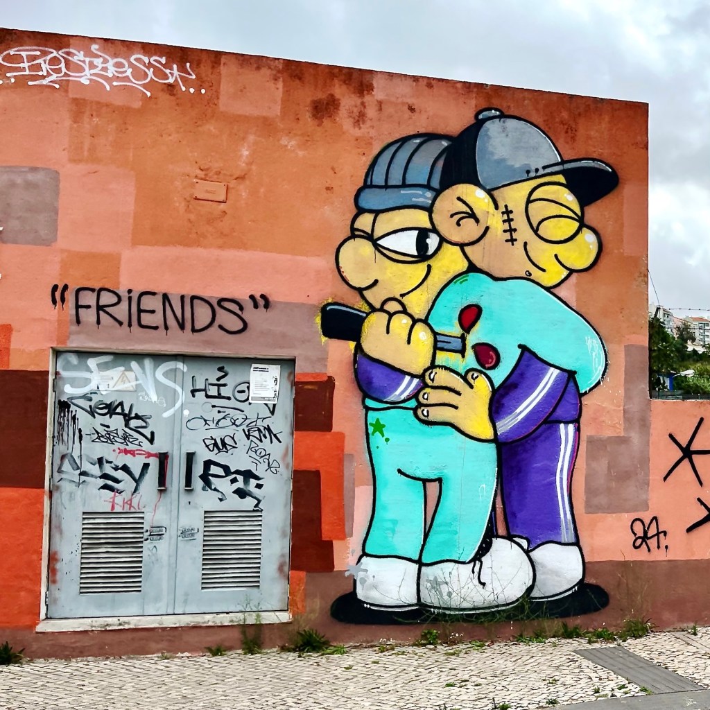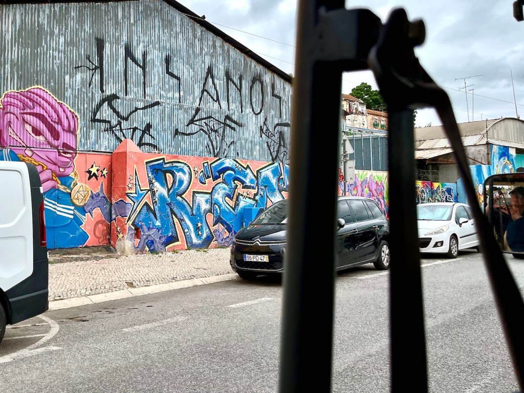 At the Lisbon airport, we were picked up by Sam, who goes by the moniker of Batman, the driver we had hired to take us from the airport to our AirBnB. Sam was kind enough to help these rather tired travellers with their luggage upon arrival at our destination. The building had a lift, but only partway up … thank you, Sam!!