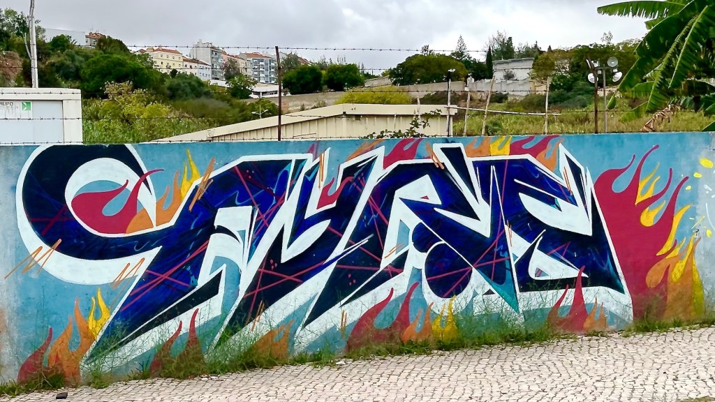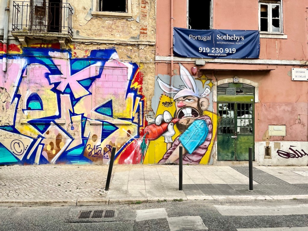 The graffiti by Explicit Citizen on the left covers a Garage door for the Festival Cor de Chelas, hence the two little no-parking signs 😆