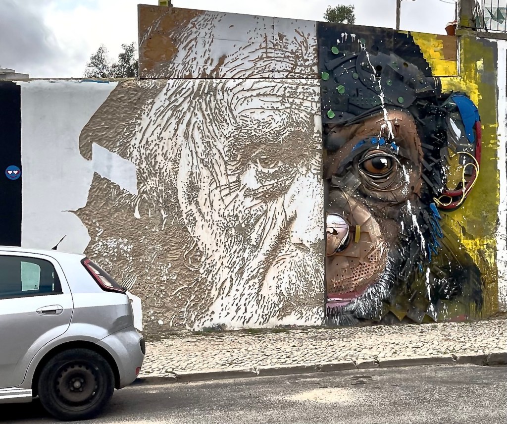 For the Festival de Cor de Chelas, the two most eminent Lisbon street artists VHILS and CORDALO II joined forces to create a unique tribute to Charles Darwin. I am glad, I had a chance to see it, however briefly.