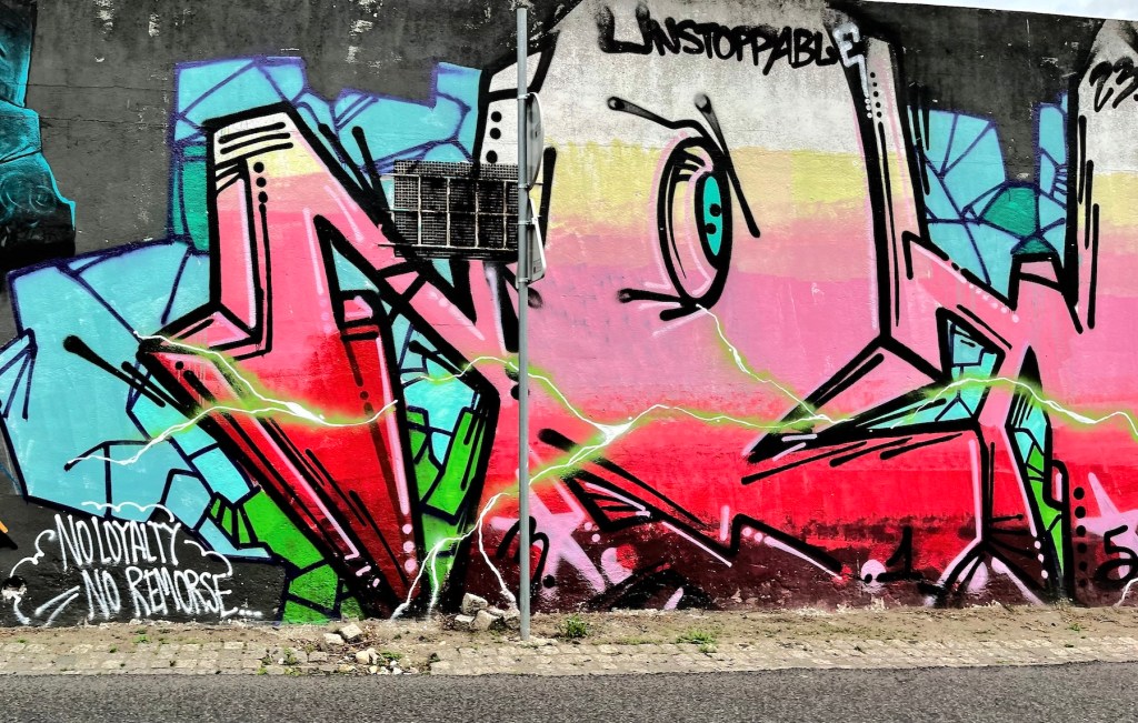 In regard to the many graffiti images I packed in this post, I hope you can understand that there is little provenance to be had. Sam drove us past the images once, without stopping. It was sheer luck when I could decipher initials or a logo later, or found a connection online.